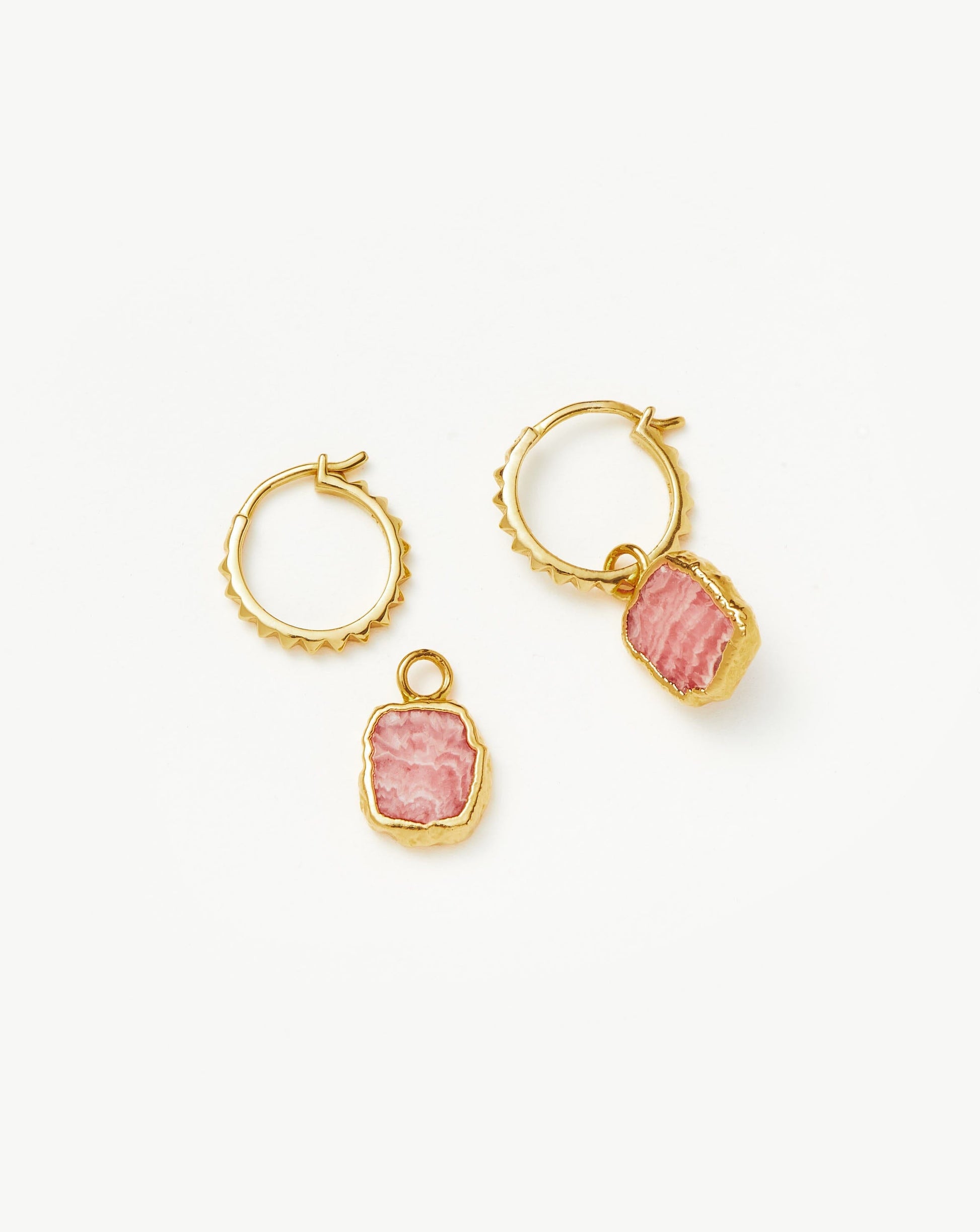 Mini Pyramid Charm Hoop Earrings | 18ct Gold Vermeil/Rhodochrosite