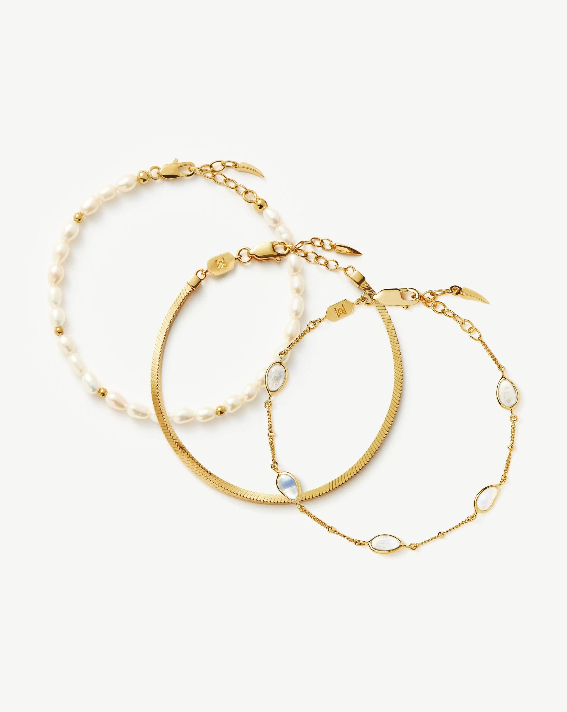 Pearl & Snake Chain Triple Bracelet Set | 18ct Gold Plated