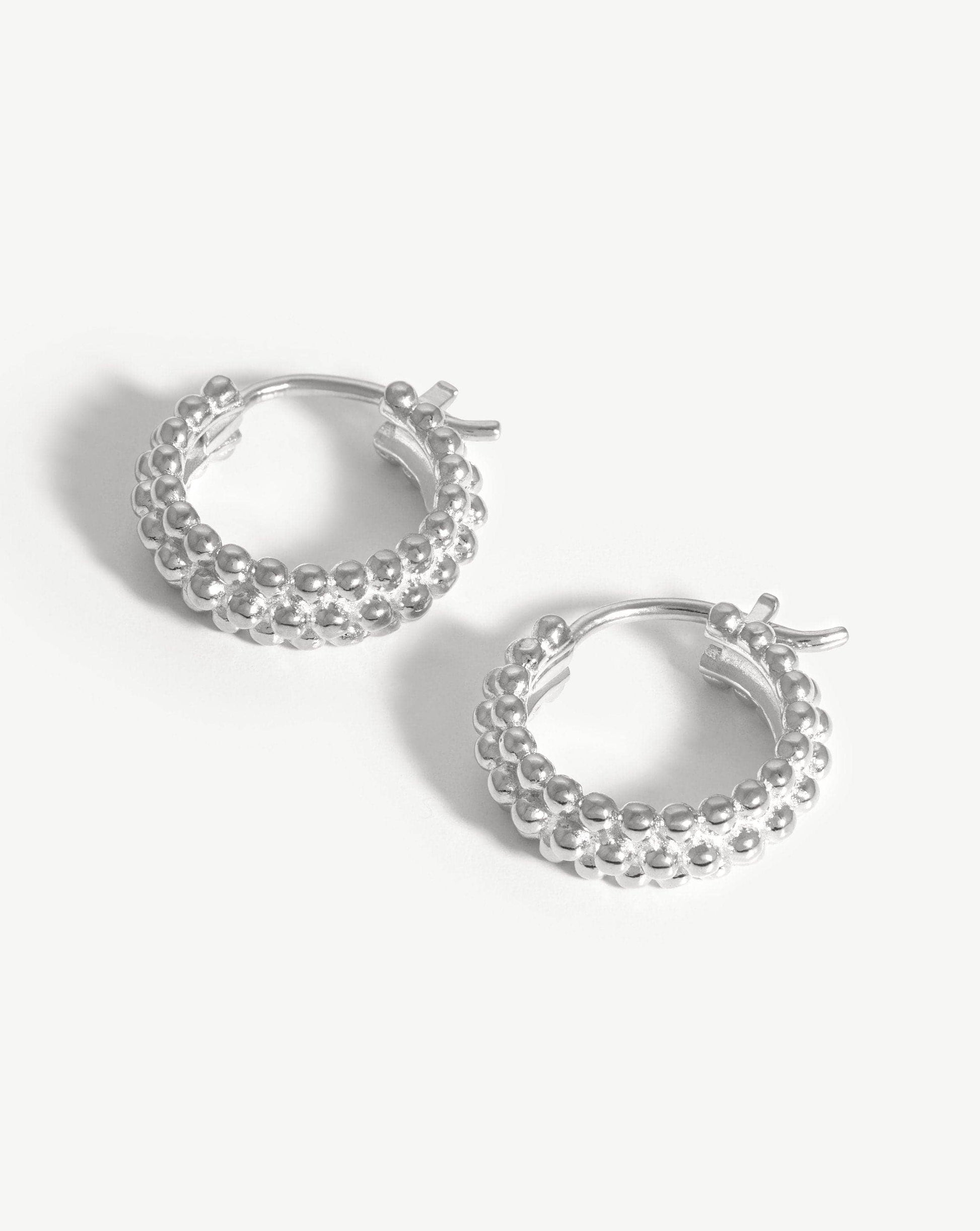 Make a subtle statement. Inspired by our best selling Baya Hoops, these mini hoop earrings with unique bobble detailing gently hug the ear lobe for a distinctive finish. Stack with chubby huggies to really make an impact. The size of this earring is best for those with smaller lobes, or perfect for second or third piercings.