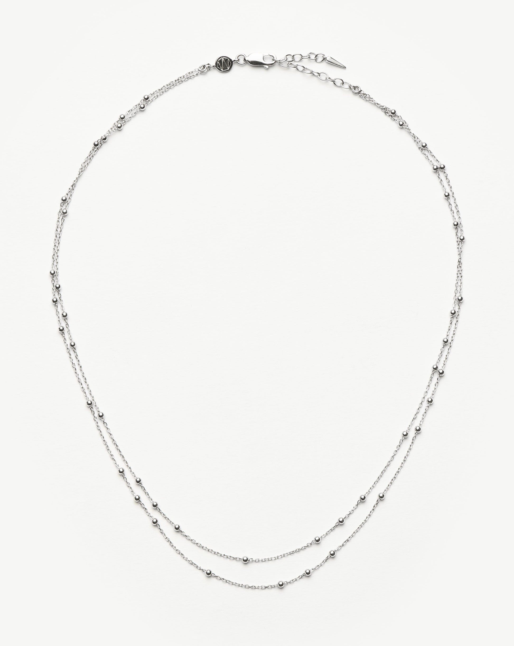Upgrade your layers with a delicate addition. Featuring two chains with bobble detailing, this best selling necklace easily fastens with a claw clasp. Two chains in one, create contrast with a chunky chain like the Axiom.