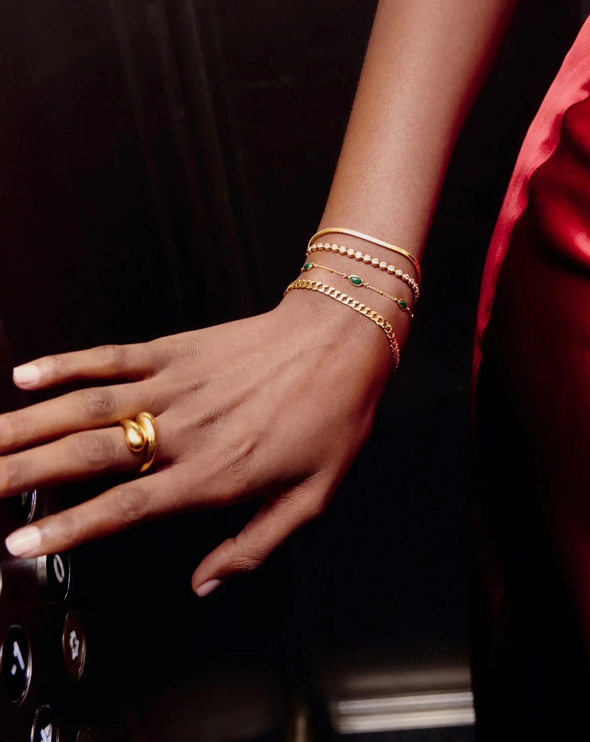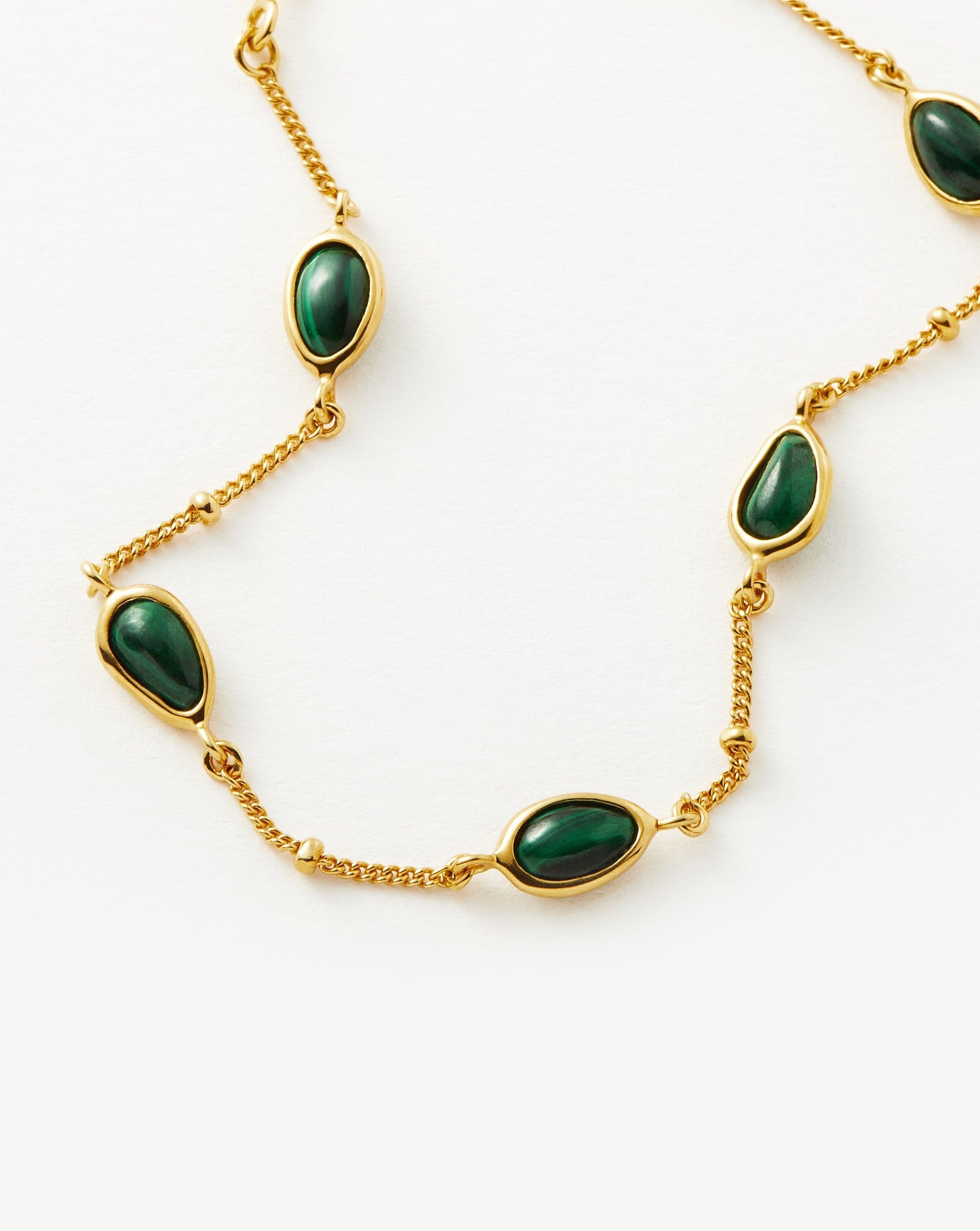 Our best selling malachite and Molten pieces meet in this envy-inducing gemstone bracelet. Give your arm stack the green light with the ultimate transformation stone. Stack with other chains and beaded bracelets for more maximalist styling. Also available as a choker.
